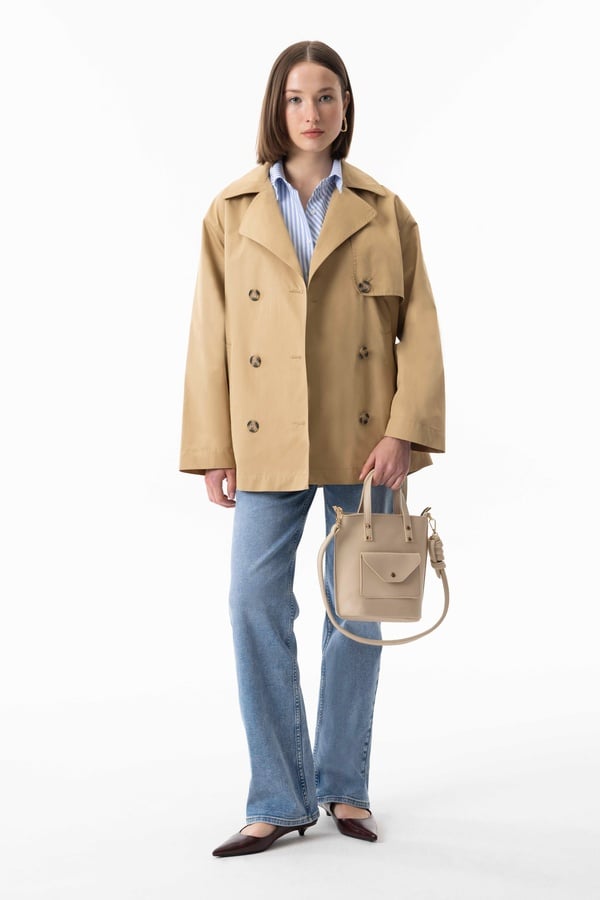 Klasik stilin modern yorumlarla bir araya geldiği kuşaklı kruvaze kapama kısa trençkot ile dolabına yeni bir soluk kat. Sofistike görünümü, kruvaze kapama detayı ve kuşakla desteklediği tasarımı, feminen bir siluet oluşturmanıza yardımcı oolacak. Trençkot ile hem gündüz hem gece kombinlerinizi kusursuz bir şekilde tamamlayabilirsiniz. Jean ve sneakerlar ile casual bir şıklık yakalayabilir ya da elbise ve topuklular ile zarafetinizi özel günlerde konuşturabilirsiniz. Mevsim geçişlerinde aradığınız tüm ürünler Mudo'da.