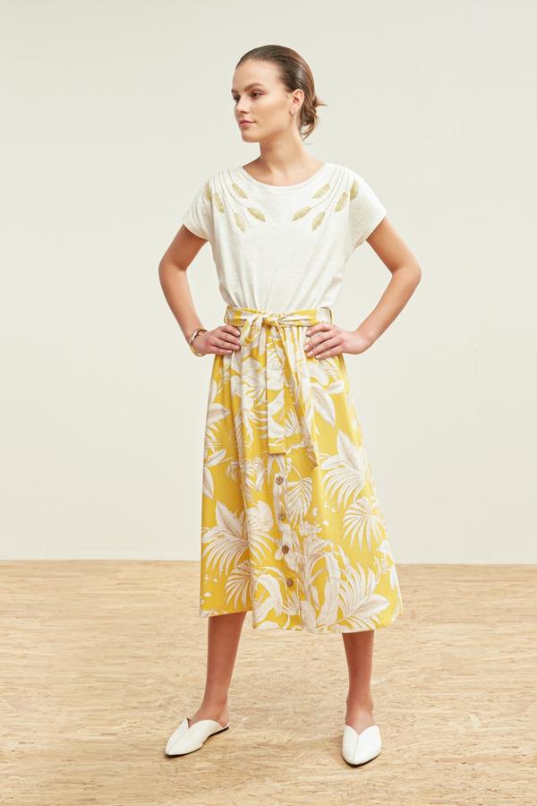 Yazın vazgeçilmezi etek modelleri her ortama rahatlığınızdan ödün vermeden uyum sağlayacak en trendi parçalardan. Keten etekler ile daha ferah ve yalın hissetmek mümkün Çabasız şıklığı yakalayabileceğiniz keten dokulu ürünleri sandalet, hasır çanta veya spor ayakkabı ile kombinleyebilirsiniz.
