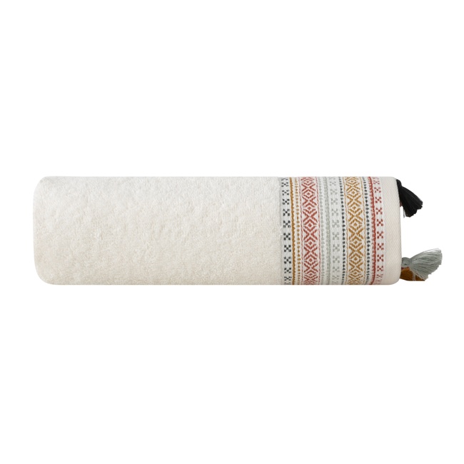 Banyolardaki etnik şıklık ve canlı detayları keşfedin. Laia havlu ile kişisel bakım rutininizi renkli ve dinamik dokunuşlarla taçlandırın. Yüksek emiciliğe sahip yumuşak dokusuyla konfor sunarken, kenarlarındaki etnik nakışlar ve renkli püskül detaylarıyla banyonuza bohem bir ruh katar.