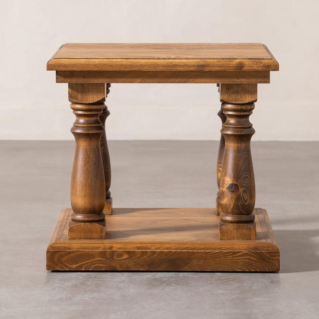 Doğal dokulardan ve ahşap tonlarından gelen sıcaklık! Evinizde doğal ve nötr tonların sıcaklığından yararlanmak isterseniz Lizzy Masif Ahşap Yan Sehpa rustik detayları sizi sahip olmak istediğiniz stile ulaştırıyor. Alt ve üst olmak üzere iki tablası bulunan, tablasındaki ustalıklı eskitme işlemi ile muadillerine fark atan Lizzy yan sehpa ile dekorasyonunuzu tamamlayın!