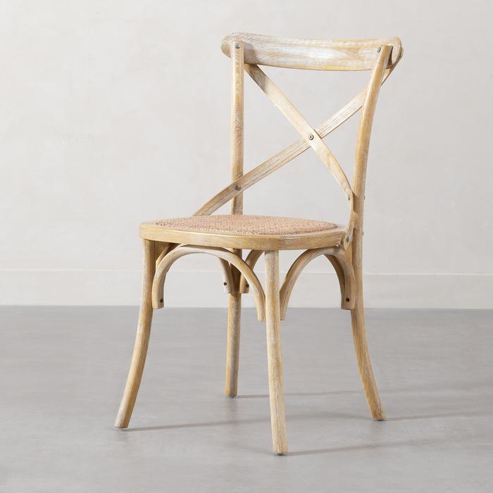 Çapraz sırt tasarımı, sandalyeye karakteristik ve zarif bir görünüm kazandırırken, kavisli ayaklar ve eskitilmiş ahşap detaylar bu estetiği tamamlar. Lupin sandalye, yemek masası etrafında, çalışma köşelerinde veya tek başına bir stil unsuru olarak kullanılabilir. Doğal ve sıcak tasarımları sevenler için ideal bir tercihtir.