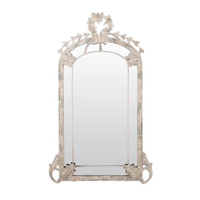 Madeline boy aynası, zarif ve nostaljik tasarımıyla yaşam alanlarınıza estetik bir dokunuş kazandırır. Beyaz çerçevesi, yaprak motifleri ve üst kısmındaki kuş figürüyle dikkat çeken bu ayna, kavisli üst tasarımı ve eskitme efektiyle klasik bir görünüm sunar. Dekoratif detayları sayesinde, sadece bir ayna olmanın ötesinde, bulunduğu ortama karakter ve derinlik katan bir unsur haline gelir.
