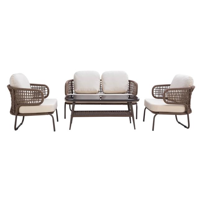 İncelikli el işçiliği farklı tasarımlarla Mudo'da... Dayanıklı alüminyumdan yapılan iskeletiyle uzun yıllar bahçe ve balkonlarınızda yerini alacak Magi Oturma Seti, 2 adet tekli, 1 adet ikili koltuk ve sehpadan oluşmaktadır. Tasarımında yer alan ip gövdesi tamamen el işçiliğiyle üretilen oturma seti, rahat minderiyle dış mekan dekorasyonunuzda konfor ve estetiği bir araya getirecek.