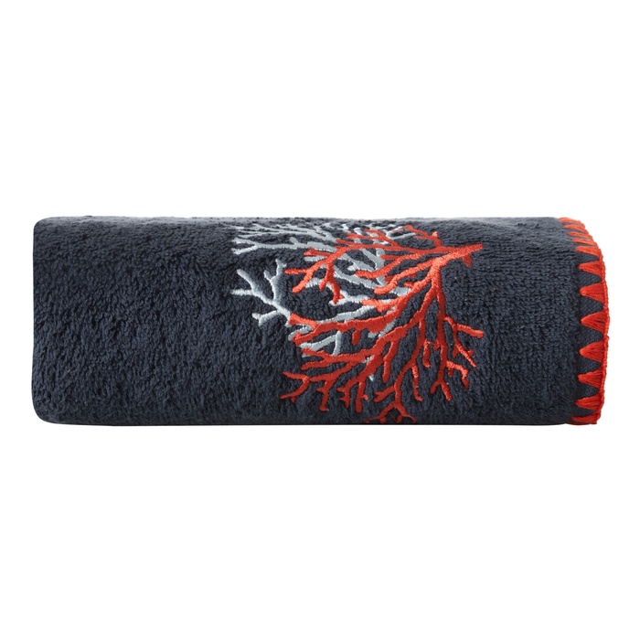 MARİN RENKLİ MERCAN NAKIŞLI HAVLU LACİVERT 50X80