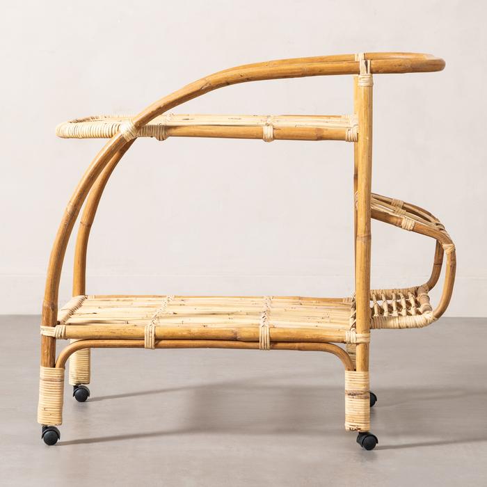 İç mekanlarınızda bambu dokunuşu... %100 doğal bambudan üretilen oval formuyla özgün tasarıma imza atan Melrose Servis arabası, iki raflı yapısıyla rahat bir kullanımı sunuyor. Raf dizaynıyla sunumlarınızı özgün kılacağınız Melrose, Mudo Concept'te.
