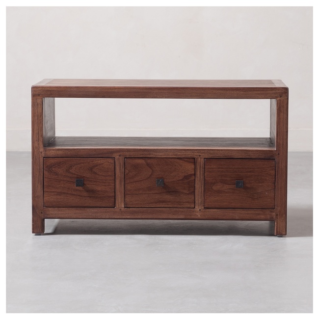 Kontrplak, her türlü hava koşullarına dayanıklı, çevre dostu bambu kullanılarak yapılan Millenium televizyon konsolu, retro stille dizayn edilen mekanlara uyum sağlıyor. Doğal bir duruşa sahip olan bu konsol, raflı ve çekmeceli yapısıyla farklı kullanım alanları sunuyor