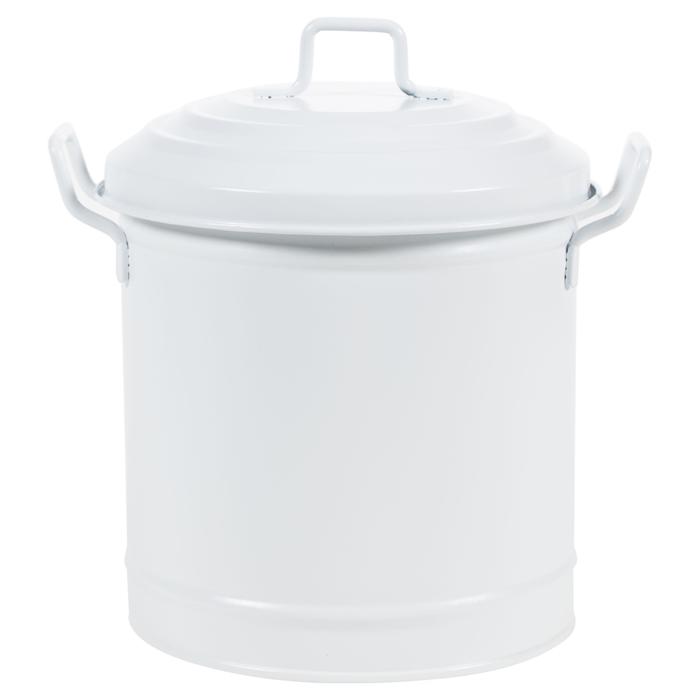 Galvaniz kalitesi sade bir tasarımda buluşuyor. Kulplu, kapaklı mini çöp kovası, 3,5 Lt hacmi ile tezgah ve masaüstü çöp kovası olarak kolaylıkla kullanılabilir. Banyo ve mutfak dekorasyonunuza dahil edebileceğiniz galvaniz çöp kovalarının farklı renk ve ölçü seçenekleri de bulunuyor.