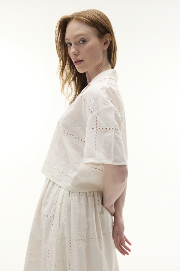 Tarzınıza elegan bir hava katmak için nakışlı kısa kollu gömlek ideal seçim. Gardırobunuzun favori parçalarından biri olan gömlek, her kombininizin kurtarıcısı olacak. İster jean şortlarla, ister midi eteklerle rahatlıkla kombinleyerek bulunduğunuz ortama uyarlayabileceğiniz gömlek; özenle işlenmiş nakış detaylarıyla sofistike bir görünüm oluşturmanızı sağlayacak. Pamuklu kumaşı sayesinde yaz aylarında rahatlıkla tercih edebilirsiniz.