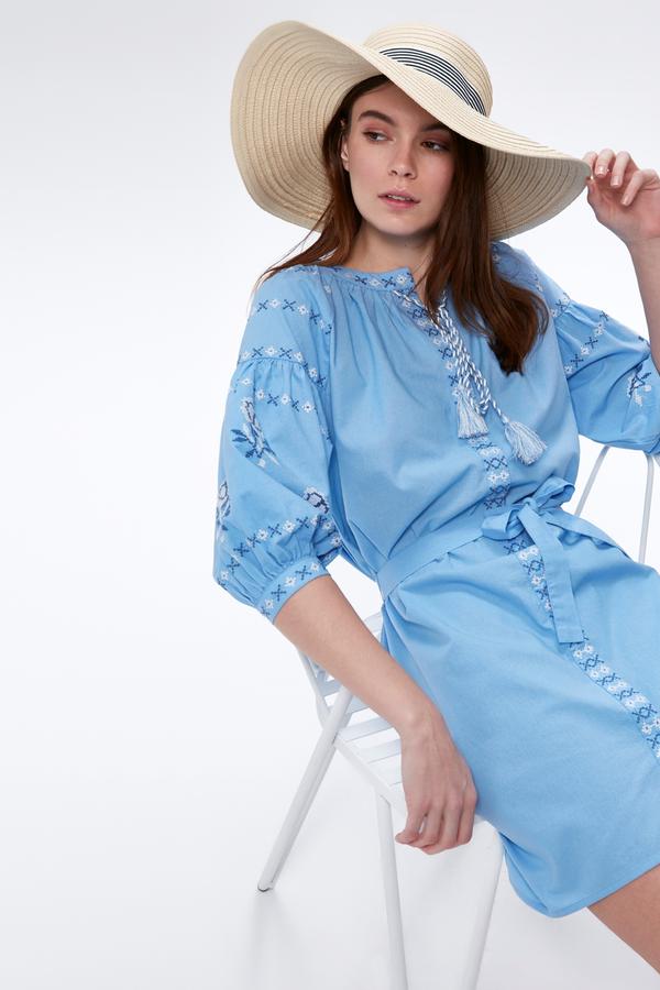 NAKIŞLI PÜSKÜLLÜ ELBİSE
