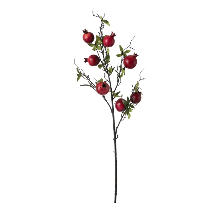 Gerçekçi görünümüyle dikkat çeken dal, üzerindeki parlak meyveler, ince yapraklar ve budaklı dokusuyla doğal bir görünüm sergiler. Yapısı sayesinde formunu uzun süre korur. Pürüzsüz meyve yüzeyleri ve mat dal dokusu arasındaki kontrast, ürünün tasarımını öne çıkarır. Bu parçayı tek başına uzun bir vazoda sergileyerek minimalist bir etki yaratabilir veya farklı yapay çiçek aranjmanlarının bir parçası olarak kullanarak daha zengin kompozisyonlar oluşturabilirsiniz. Konsol, orta sehpa veya yemek masası üzerinde konumlandırarak bir odak noktası yaratmaya yardımcı olur.