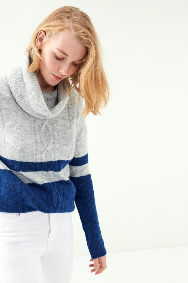 ÖRGÜ DESENLİ DEGAJE YAKA KAZAK