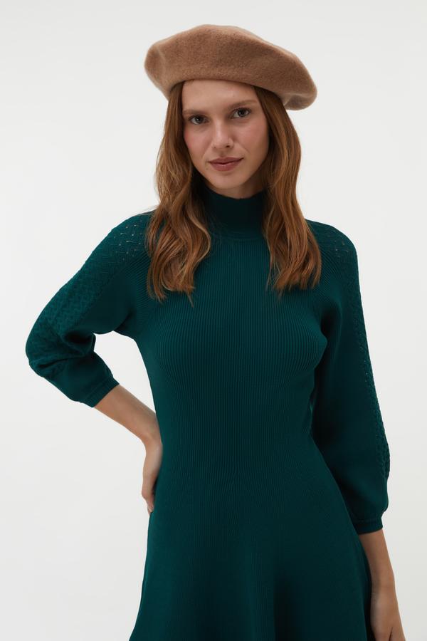 ÖRGÜ DETAYLI TRİKO KLOŞ MİDİ ELBİSE