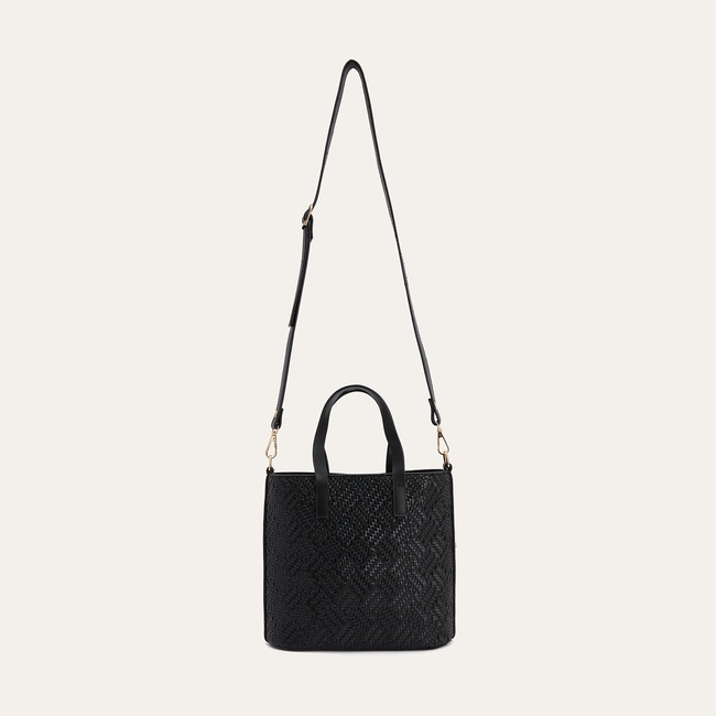 Çantanın ana gövdesini oluşturan mat ve tok duruşlu örgü doku, pürüzsüz yüzeyli askılarla bir kontrast yaratır. Hem elde taşımak için tasarlanmış kısa sapı hem de omuzda veya çapraz kullanım imkanı sunan ayarlanabilir uzun askısı ile fonksiyonelliği ön plana çıkarır. Parlak aksesuarlar, çantanın tasarımına incelikli bir dokunuş katarken genel estetiği güçlendirir. Günlük jean kombinlerinden ofis kombinlerine kadar geniş bir yelpazede stilinizi tamamlar.