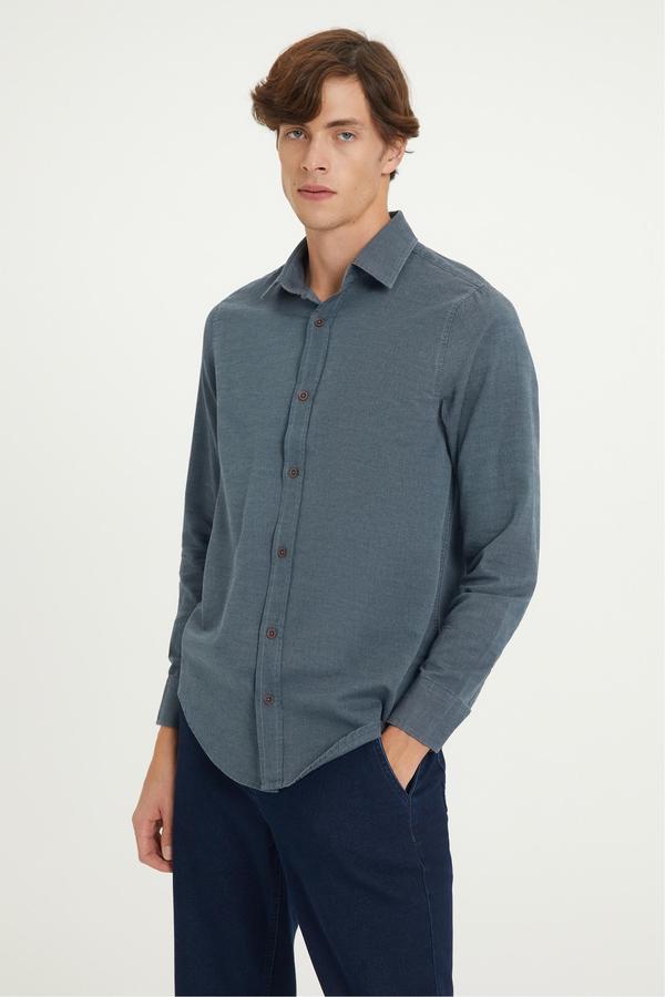 Mudo gömlek modelleri ile ofis şıklığını oluştur. %100 pamuk kumaştan üretilen, bu sayede cildinin nefes almasını sağlayacak regular fit gömlek modelini kanvas pantolonlar ile tamamlayabilir, jean pantolon modelleri ile modern ve şık görünebilirsin.