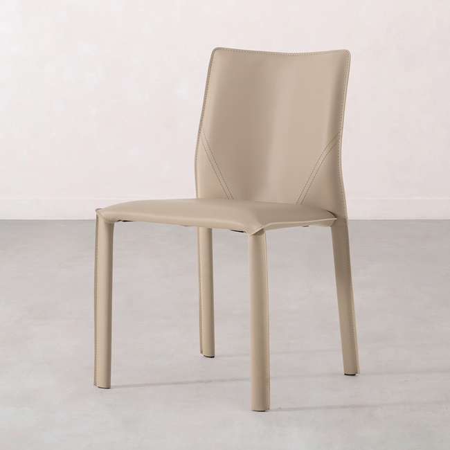 Tasarımında düz ve akıcı hatlar öne çıkar. Pürüzsüz yüzeyi ve deri benzeri dokusu, hem göze hem de dokunuşa hitap eden bir kalite hissi oluşturur. İnce dikiş detayları, özenli işçiliği vurgularken, kalın ve silindirik ayakları modern bir denge ve sağlamlık sunar. Pearl Sandalye, yemek masası etrafında şık bir takım oluşturmak, çalışma köşesine karakter katmak veya antrede tek başına dikkat çekici bir obje olarak kullanmak için çok yönlü bir seçenektir. Nötr ve sıcak rengi sayesinde farklı dekorasyon stilleriyle kolayca uyum sağlar.