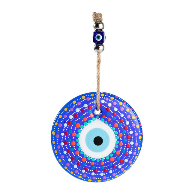 El işçiliğini yansıtan detayları ve zarif malzeme birleşimiyle bu nazarlık, renkli boncukları, dokulu yüzeyi ve özgün tasarımıyla yaşam alanlarına pozitif enerji ve estetik bir duruş kazandırır. Dekorasyonda kültürel dokuları sevenlerin dikkatini çekecek olan aksesuar, bulunduğu ortamın enerjisini etkileyecek.