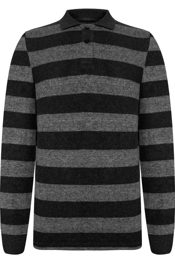 POLO YAKA ÇİZGİLİ UZUN KOLLU T-SHIRT