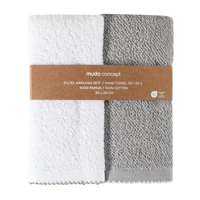PRAHA 2'Lİ EL HAVLUSU SETİ BEYAZ GRİ 30X50