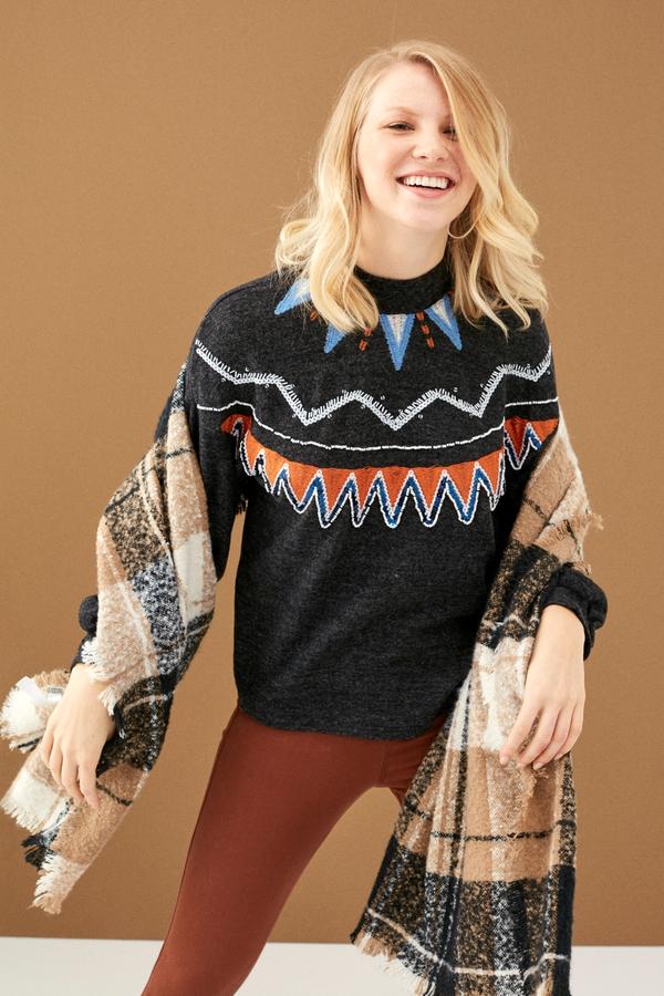 Desen: NakışlıFit: Düşük OmuzKol: Uzun KolMalzeme: %54 Viskoz, %42 Polyester, %4 ELASTAN