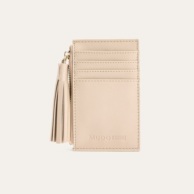 Fonksiyonelliği estetikle buluşturan bu model, dikey olarak tasarlanmış kart yuvaları sayesinde kartlarınıza hızlı erişim imkânı sağlar. Fermuarlı bölmesi, bozuk para veya küçük eşyalarınız için güvenli bir saklama alanı sunarken, püskül detayı tasarıma hareketli bir karakter kazandırır. Pürüzsüz dokusu ve sert yapısıyla uzun süreli kullanım için uygundur. Çantanızda minimum yer kaplayarak maksimum düzen sağlar.