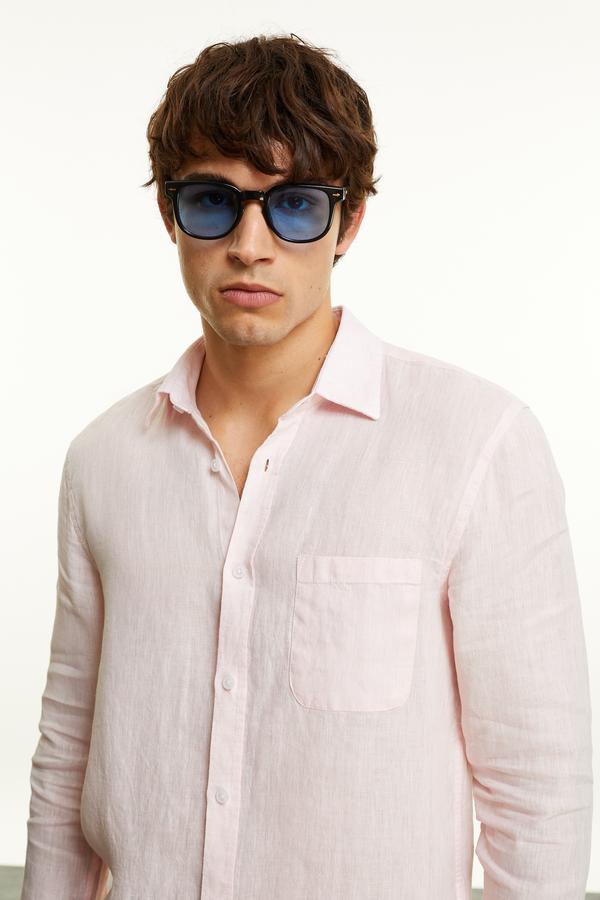 REGULAR FIT CEPLİ KETEN GÖMLEK