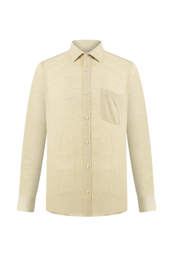REGULAR FIT CEPLİ KETEN GÖMLEK