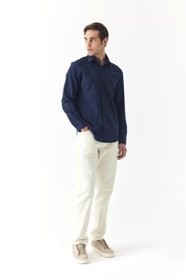 REGULAR FIT ÇİZGİLİ DOKULU UZUN KOLLU GÖMLEK