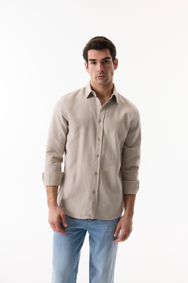 Klasik tarz modern dokunuşlarla bir araya gelerek dolabınıza taşınıyor. Regular fit cepsiz uzun kollu gömlek ile tarzınızı yansıtın. Pamuk ve liyosel karışımlı kumaşı sayesinde gün boyu konforlu bir deneyim yaşamanızı sağlayacak olan gömlek, modern çizgiler taşıyan görünümü ile stilinizin bir yansıması haline gelecek. Blazer ceketler ile casual bir görünüm oluşturup önemli iş toplantılarında kombinleyebilir ya da slim fit pantolonlar ile hafta sonu kahvaltısında stil sahibi bir hava yaratabilirsiniz.