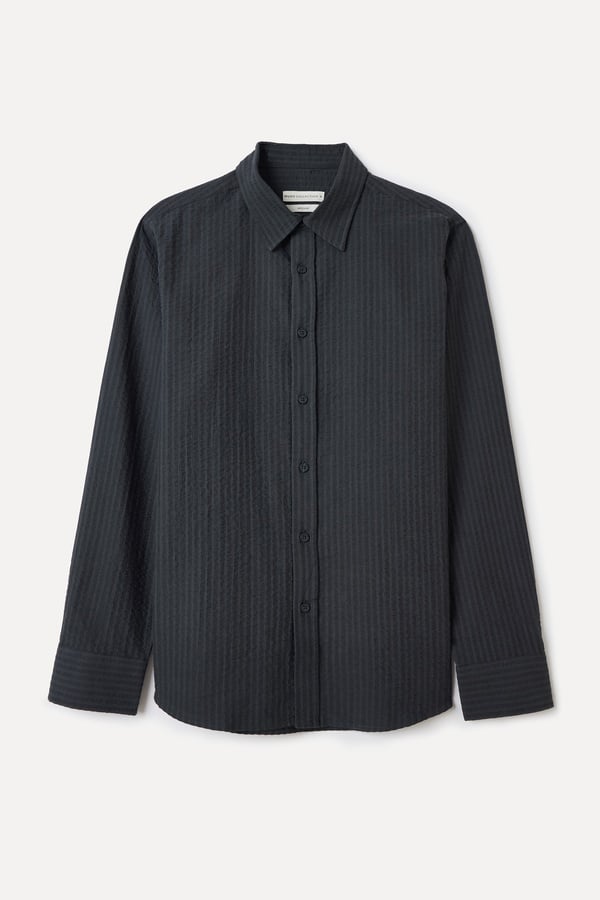 Regular fit dokulu uzun kollu gömlek, seersucker dokusu ile dikkat çekiyor. Hafif buruşuk ve kabarık bir dokuya sahip olan seersucker deseni ile görünümünüze hareket katar. Uzun kollu yapısı ve %100 pamuklu kumaşıyla her mevsim kullanıma uygun olan gömlek, regular fit kesimi ile vücudunuza mükemmel uyum sağlar. Chino pantolon ve sneakerlar ile kombinleyerek tarzınızı oluşturabilirsiniz.
