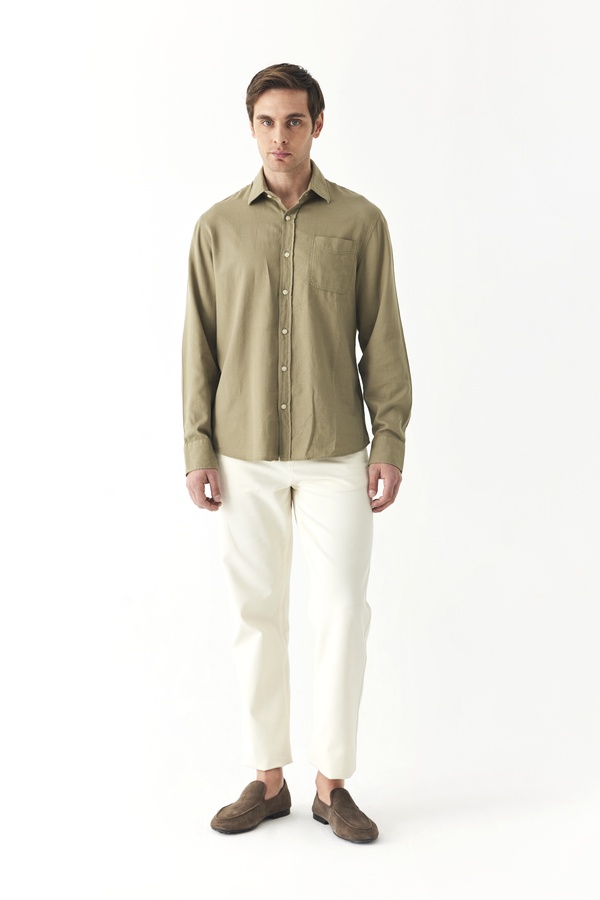 REGULAR FIT DOKULU UZUN KOLLU GÖMLEK