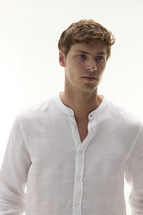 Yaz tarzınızın vazgeçilmez parçası regular fit hakim yaka uzun kollu keten gömlek olacak. Hakim yaka tasarımıyla modern ve minimalist bir duruş sergilemenize yardımcı olacak olan gömlek; cildinize nefes aldırır ve sıcak havalarda bile serin tutar. Sade ancak klasik bir tarz arayanlar için dikkat çeken hakim yaka detayının yanı sıra, uzun kollu olmasıyla bu gömlek her mevsim favoriniz olacak.