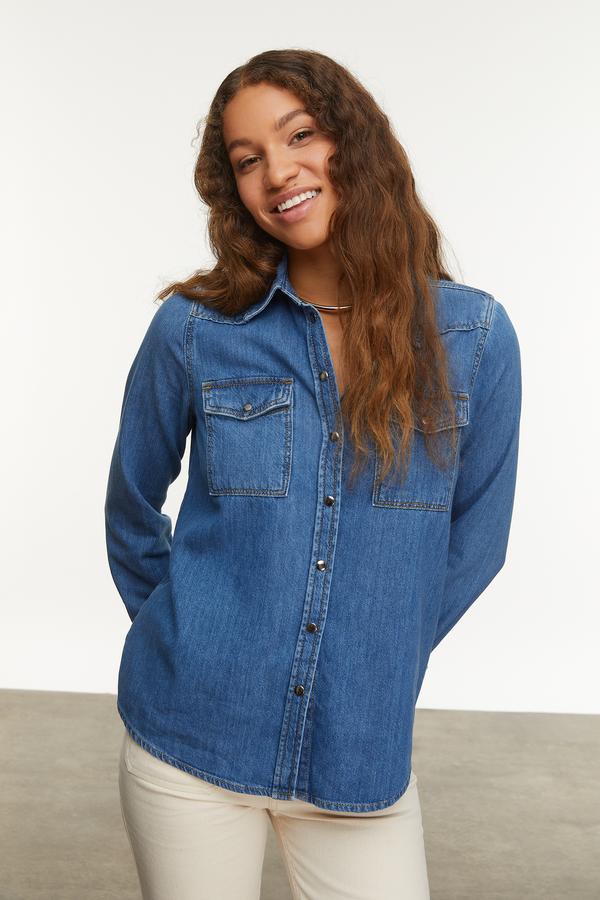 Zamansız jean ile her mevsim cool ve güçlü bir görünüm elde edebilirsin. Çıtlçıt düğmeli kapama detayına sahip kadın gömleği jean kombinlerine dahil ederek bütünlüğü stiline taşıyabilirsin.