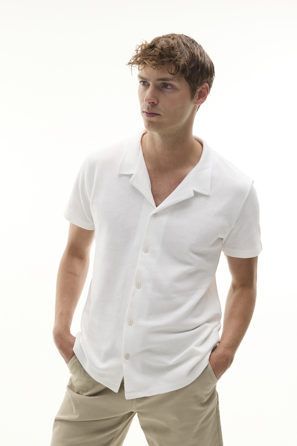 REGULAR FIT RESORT YAKA KISA KOLLU ÖRME GÖMLEK