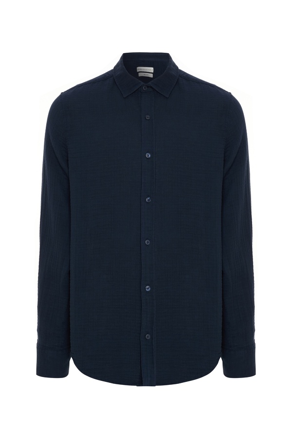 Giyimde sade şıklık arayanlar için regular fit uzun kollu gömlek gardıroplarınızın gözdesi olacak. İster şortlarla, ister pantolonlarla kombinleyebileceğiniz gömlek modeli uzun kollu olmasıyla her mevsim kullanıma uygun. %100 pamuk kumaşı ve müslin duruşu sayesinde cildinize ekstra konfor sağlayacak olan gömlek, klasik ve güçlü bir duruş sergilerken, modern kesimi ile göz alıyor.