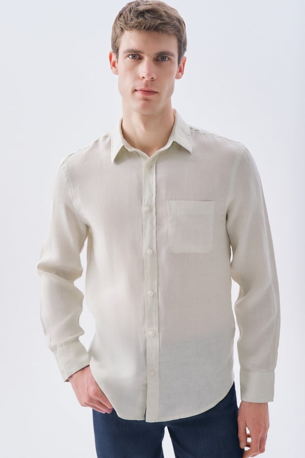 REGULAR FIT UZUN KOLLU KETEN GÖMLEK
