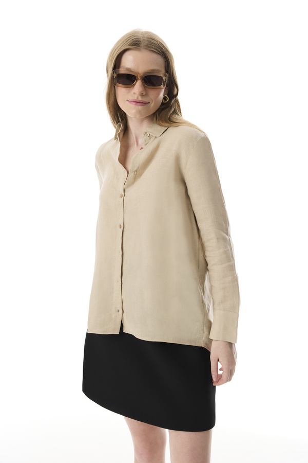 REGULAR FIT UZUN KOLLU KETEN GÖMLEK