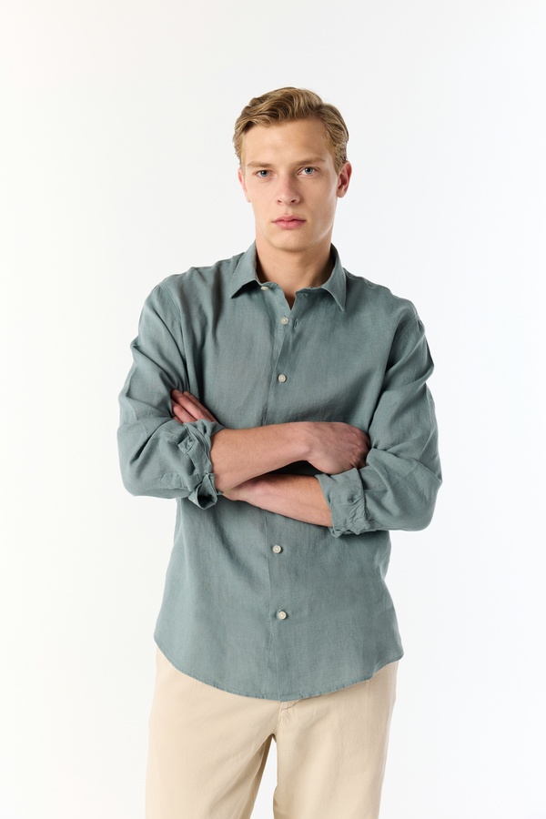 REGULAR FIT UZUN KOLLU KETEN GÖMLEK