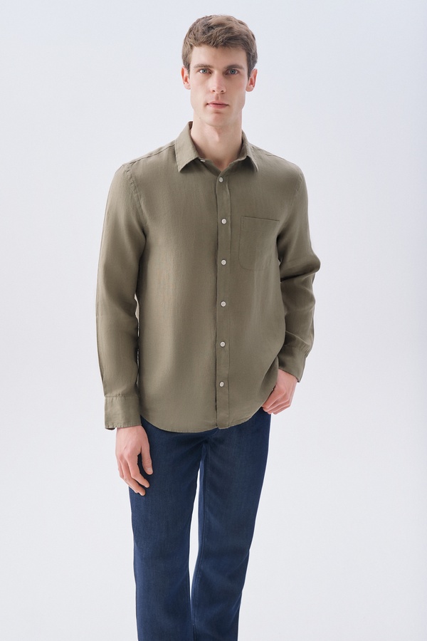 REGULAR FIT UZUN KOLLU KETEN GÖMLEK