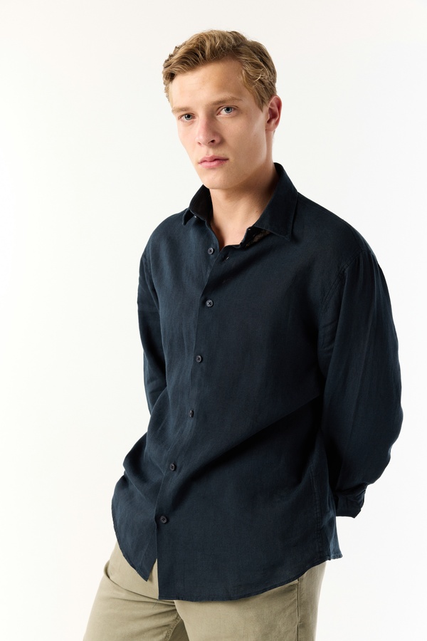 REGULAR FIT UZUN KOLLU KETEN GÖMLEK