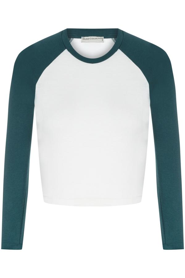 RENK BLOKLU BİSİKLET YAKA UZUN KOLLU T-SHIRT