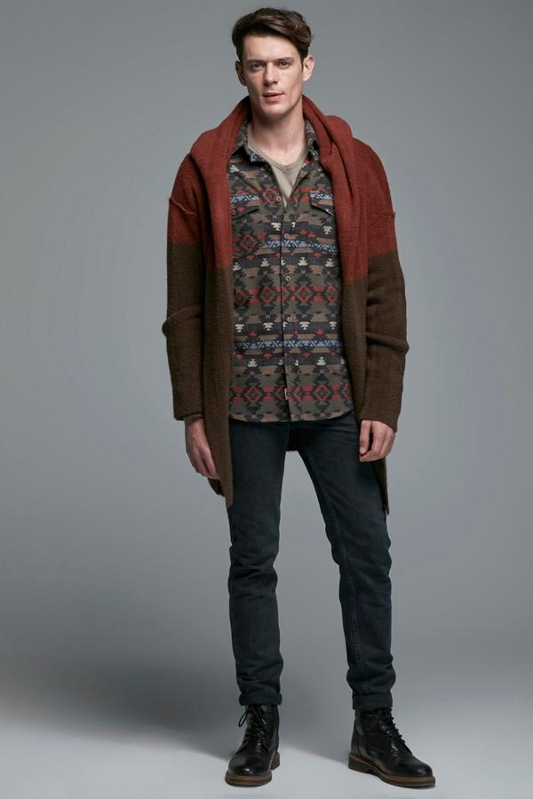 Mudo erkek triko hırka modelleri ile sokak modasına şık dokunuşlar. Renk bloklu kapüşonlu tasarımıyla spor görünümü sunan erkek uzun hırka, triko kumaşıyla sonbahar- kış aylarında vazgeçilmezin olacak.