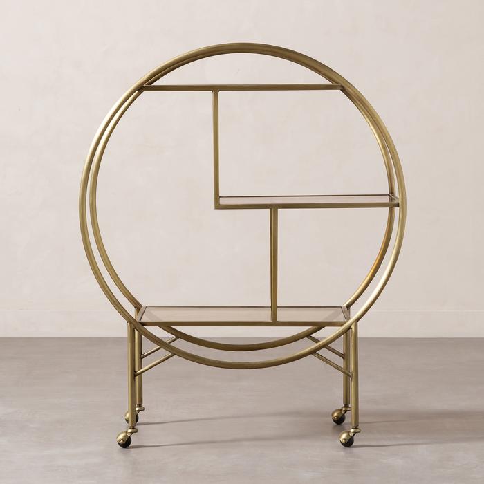 Geometrik şekli ve farklı tasarımıyla benzer ürünlerden ayrışan Santos Servis Arabası, gold ve cam detaylarıyla göz kamaştırıyor. Üç raftan oluşan yapısı ve yuvarlak hatlarıyla benzersiz bir tasarımı sunuyor. Raf dizaynıyla sunumlarınızı özgün kılacağınız metal servis arabası yaşam alanlarınıza elegant bir dokununuş katacaktır.