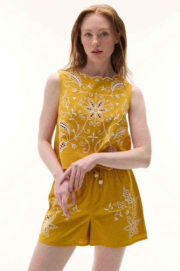 SIRT DETAYLI KOLSUZ NAKIŞLI BLUZ