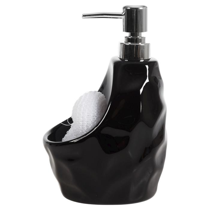 Siyah renginde kendinden dövme desen dokulu, hazneli sıvı sabunluğu mutfak tezgahlarınızda deterjan veya sıvı sabun doldurarak kullanabilirsiniz.