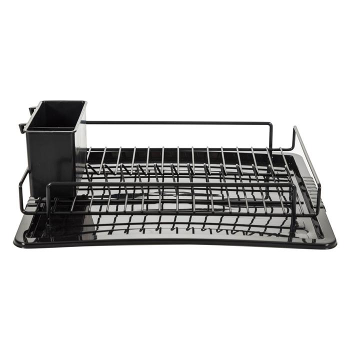 Tek katlı metal siyah bulaşıklık altındaki plastik tepsisi ve plastik kaşıklığıyla beraber 3 parçadan oluşmaktadır.