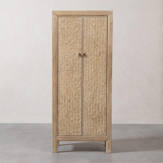 Dolabın en dikkat çekici özelliği, hasır dokulu kapaklarıdır. Bu doku, sağlam çerçeveyle birleşerek estetik ve dayanıklı bir yapı sunar. Yatak odası, salon veya antre gibi farklı alanlarda kullanıma uygun olan Soho Dolap, eşyalarınızı düzenli bir şekilde saklamanızı sağlar ve mekanın genel görünümünü tamamlar. Yuvarlak kulplar ve minimalist ayak tasarımı ise ürüne modern bir dokunuş katar.