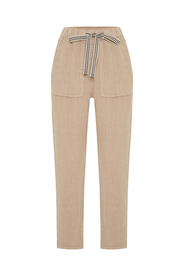 STRAIGHT FIT BELİ BAĞLAMALI KETEN PANTOLON