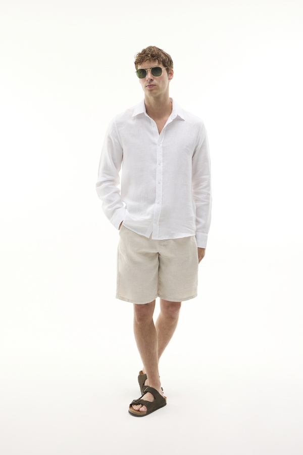 STRAIGHT FIT BELİ BAĞLAMALI KETEN ŞORT