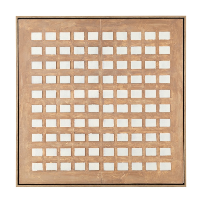 Kalın ve belirgin fırça darbeleriyle oluşturulan kabartmalı dokulu yüzey, tabloya üç boyutlu bir karakter kazandırır. Soyut geometrik desenler ve kare formların tekrarı, esere ritmik bir bütünlük sağlar. Minimal çerçevesi ise sanat eserinin kendisini ön plana çıkarır. Bu tablo, sadeliğin içindeki zenginliği ve modern estetiği duvarlarınıza taşıyarak yaşam alanınızda dikkat çekici bir odak noktası oluşturur.