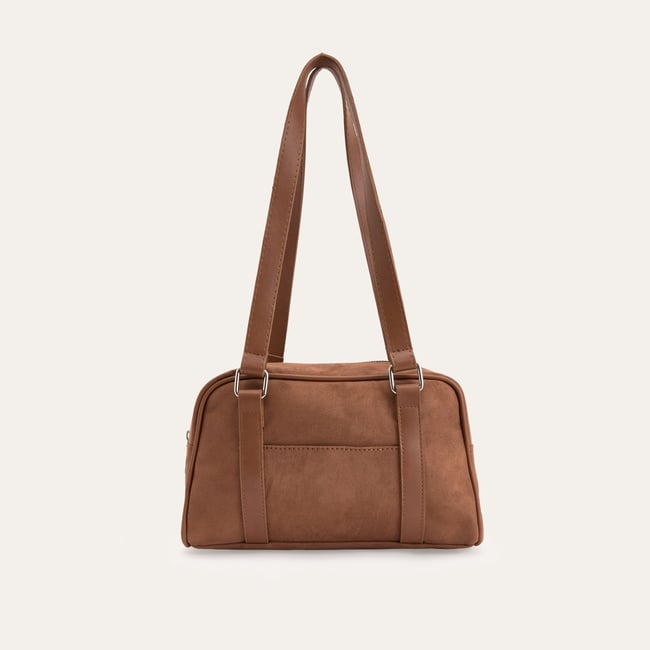 Süet dokulu şık el çantası, şehirli yaşam tarzının dinamizmini zarafetle birleştirerek günlük stilinize sıcaklık ve konfor katar. Pratikliği bir arada sunan bu model, yumuşak dokusu ve minimalist tasarımıyla öne çıkar. Kahverengi ve taba tonlarının hakim olduğu renk paleti, sonbahar ve kış aylarının yanı sıra her mevsimde gardırobunuzun tamamlayıcı bir parçasıdır. Hem şık hem de gündelik kombinlerin tamamlayıcısı olarak tasarlanan bu çanta, pratiklik ihtiyacına cevap verir.
